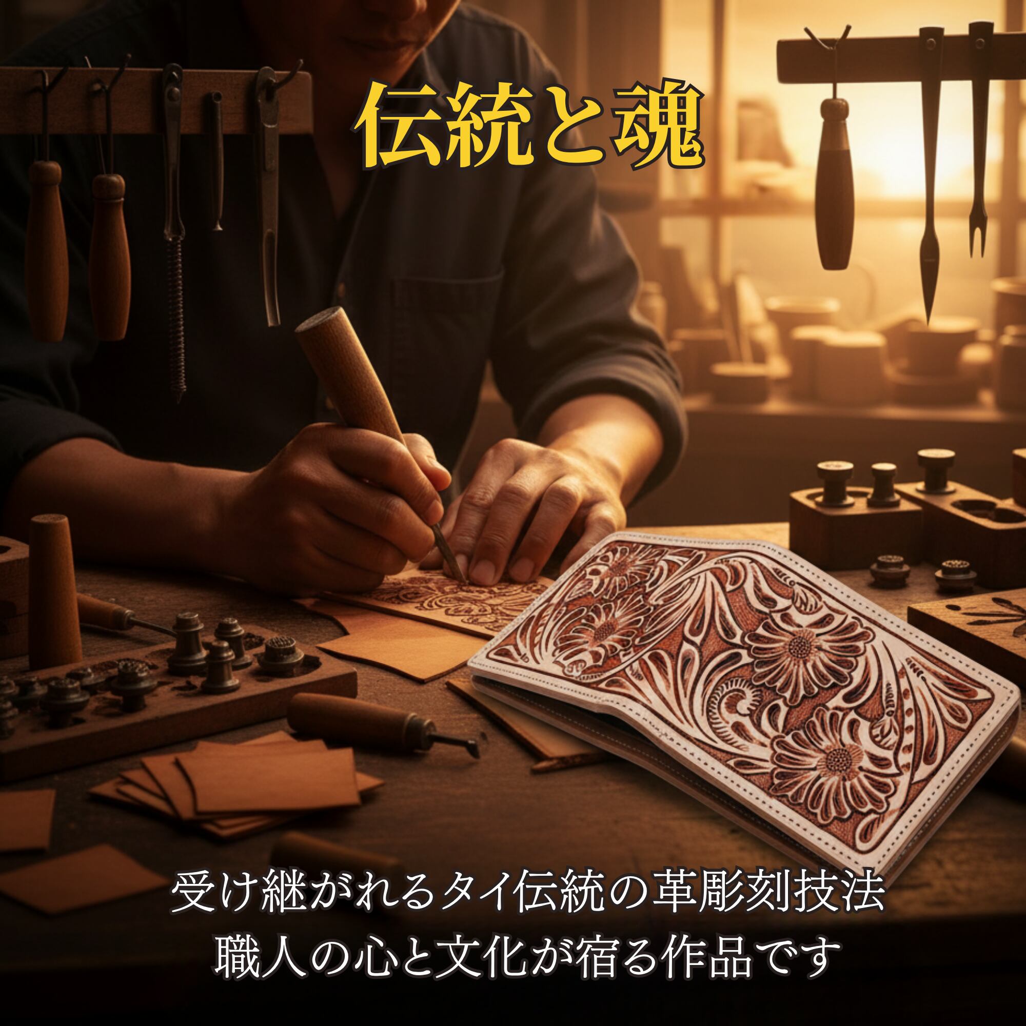 ・【タイ伝統のレザークラフト】世代を超えて受け継がれるレザー工芸技術。手仕事が生み出す本物志向のアイテムをお届けします。