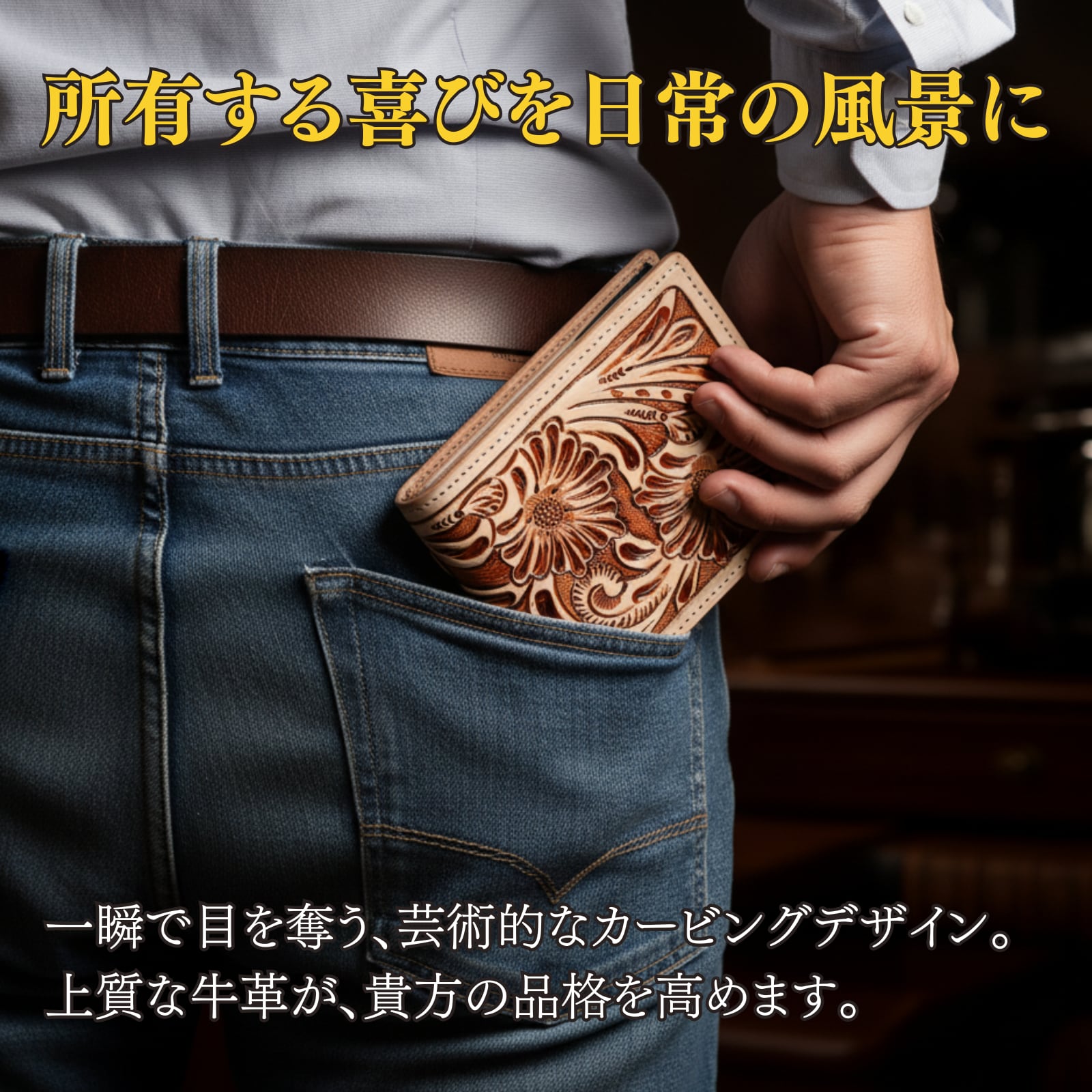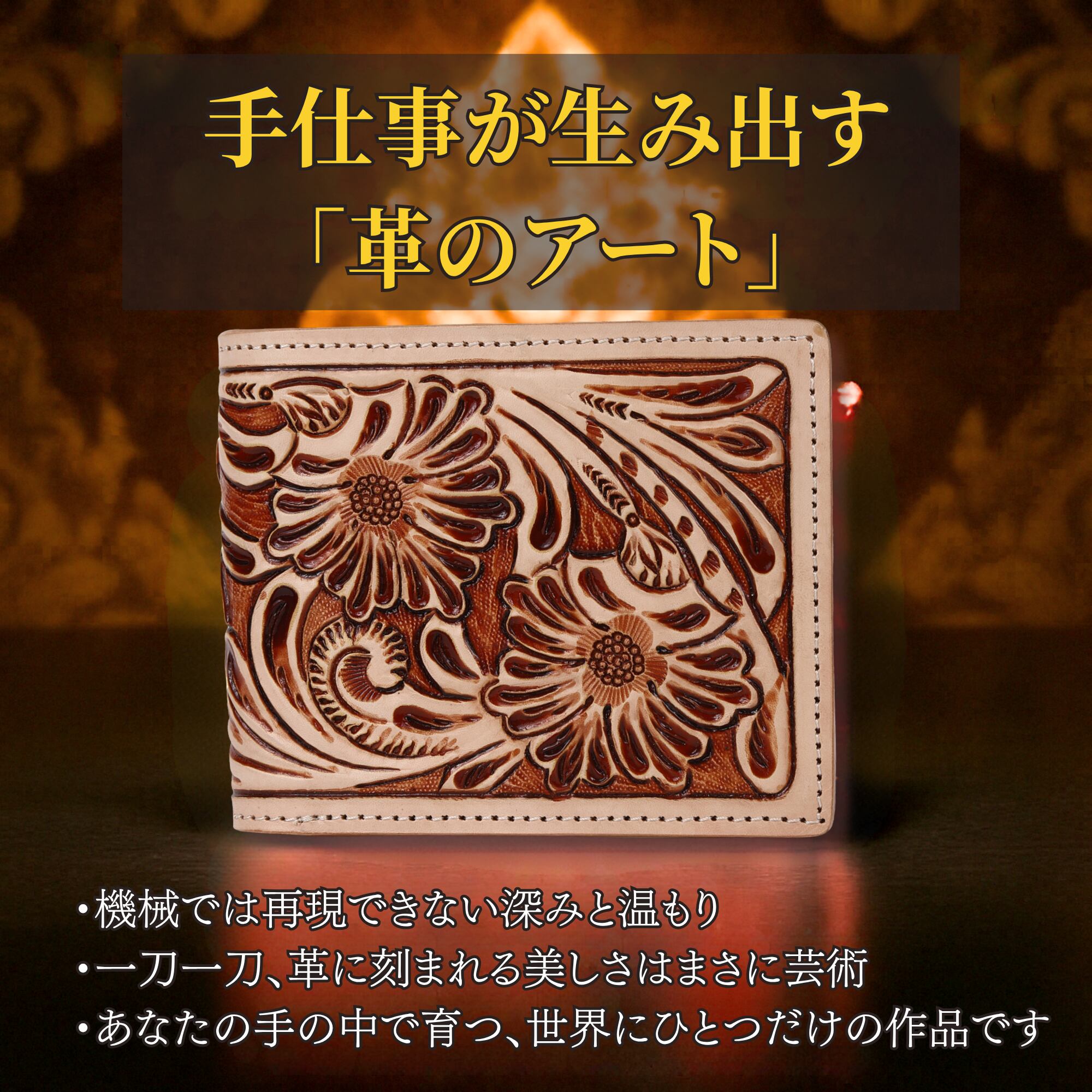 ・【一点ずつ手彫りされた唯一無二のデザイン】タイの熟練職人が、一刀一刀手作業で彫り上げたカービング財布。機械では再現できない立体感と温もりが魅力です。